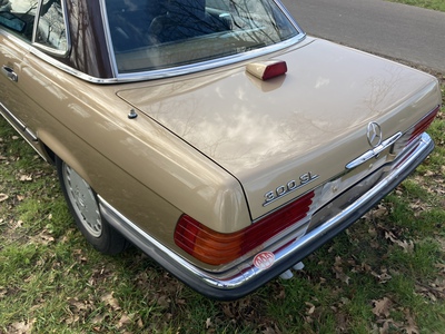 The last invoice for the maintenance was 49146 mileage (about 100 miles ago); extensive maintenance was then carried out for a total amount of $ 9,423.65. This invoice is also included in the photo gallery. Replacements include renewal of the valve rubbers, valve cover gasket, spark plugs, distributor cap, rotor, new engine oil Castrol, new oil filter, new rear brake discs, brake pads and calipers, cooling fin upgrade, brake fluid renewed, coolant renewed, front suspension rubbers renewed, new antenna, 4 wheel alignment, air conditioning checked and filled. The tire size is around 205/65/15 and the tires of the Michelin brand have and still have a tread depth like new. The first owner kept the SL until 1992, the SL was recently imported to Europe by the current owner. This 300SL is finished in champagne metallic (color number 473) with a dark brown hardtop and a black interior.