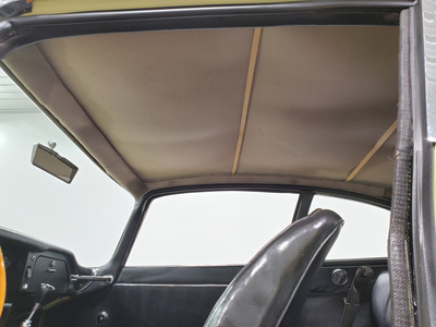 It was built in 1968 and is a 4.2 2+2 version with the sought after manual transmission. The 2+2 is the most comfortable version of the fixed head coupe because of the bigger interior and the slightly longer passenger door which makes it much easier going in and out. This is a very low production number car with only 1983 cars ever build. The current owner has the car for approximately a year. This E-type is in the great combination of Primerose yellow with a black leather interior. The paint and chrome are in good condition, with some patina. The engine is matching numbers with the car and runs and sounds very healthy. The gears engage smoothly and the cars breaks also work smoothly.