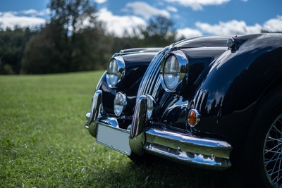 The Jaguar XK140 was introduced in late 1954 and sold as a 1955 model. With the XK 140 Jaguar put the focus on creating amore confortable car, away from the harsh XK120. Exterior changes that distinguished it from the XK120 included more substantial front and rear bumpers with overrides, and flashing turn signals above the front bumper which were operated by a switch on the dash. The grille remained the same size but became a one-piece cast unit with fewer and broader vertical bars.