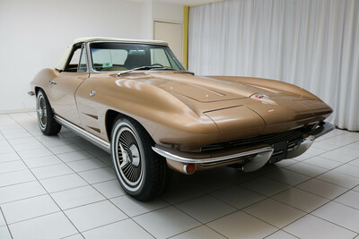 Year of construction1964 Color Saddle Tan: Mileage5,945 miles Transmission: Manual Cylinder capacity 5.358 HP: 300 · Matching Numbers · Leather furnishing · Power steering Brand: Chevrolet Model: Corvette Type: C2 Sting Ray Convertible Year of construction: 1964 · Fuel gasoline Color: Saddle Tan Doors: 2 Number of seats: 2 Transmission: Manual Cylinders: 8 Mileage: 5,945 miles Body: Convertible Options: 19467 Base Convertible A01 Soft Ray Tinted Glass, All Windows G81 Positraction Rear Axle L75 327ci, 300hp Engine M20 4-speed Manual Transmission N40 Power Steering P48 15z 6L Cast Aluminum Knock-Off Wheels U69 AM/FM Radio 932 Saddle Tan 898 C-D-G-H Saddle Leather
