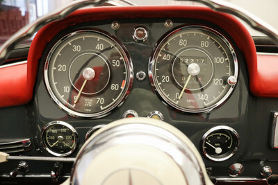 Interior: The interior of the Mercedes-Benz was also completely addressed during the restoration. For example, a completely red interior has arrived and a new red carpet has also arrived. A red tonneau cover has also been chosen. All original clocks are present as well as the original radio.