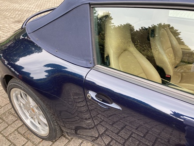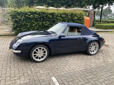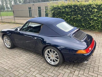The Porsche 993 3.6 convertible is a 3.6 of the second generation with the vario-ram which delivers 286 horse power and and has much more torques at low rpm’s. This car was delivered new in the USA and came to Europe 4 years ago and now has a Dutch registration. The car has only done 100.000 miles or the equivalent of 160000 kilometers. This 993 the car is finished in the factory in Ocean blue with a beige interior and soft top is dark blue sof top, a great color combination! This softop is new and also a new tonneau-cover comes with the car. This 993 has the sought after 5 speed manual gearbox which is much more desirable than the tip-tronic versions