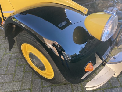 This model was an immediate sales success! Inspired by this success, Citroën introduced an additional new color scheme in July 1982: Jaune Helios with Noir. In July 1983, the third color scheme was introduced in two-tone gray: Gris Cormoran with Gris Nocturne. The Charleston versions were produced until the end of production of the 2CV in 1990 and all had a 602cc engine producing 29 horsepower, allowing for a top speed of 115 kilometers. The Charleston version in yellow and black was not popular at that time. In the Netherlands, for example, only 25 Yellow/black Charlestons were sold. The vast majority of Charlestons you will see are burgundy red with black. This makes a Charleston in Jaune Helios/black a very special car today.