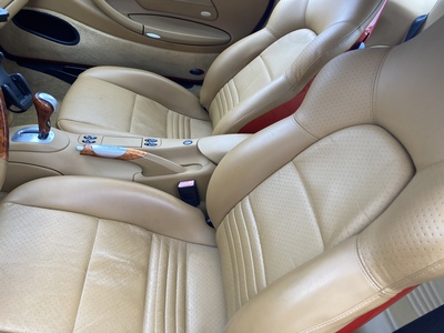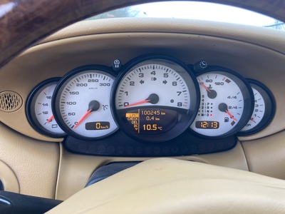 This 996 is equipped with a Tiptronic gearbox and has the very exclusive color Orangerot Perlcolor, color code 1A8 9 4 WBL, a color normally only seen on special versions of the 996 such as the GT2s and GT3s. The mileage is 101,000 kilometers and is not guaranteed by the seller because there are no booklets or maintenance invoices with the car. As is often the case with cars delivered new in the Gulf states, this car is equipped with numerous options including: xenon lighting, headlight washing system, telephone preparation, left and right electric sports seats, front seats with hard shells in the cars exterior color, chestnut wood steering wheel inlay, chestnut wood gear lever inlay , chestnut wood inlay handbrake handle and an electric sliding / tilting roof. The 996 has the factory-delivered CR22 radio-CD player with a CD changer in the trunk. The saleswoman notes that the Porsche has signs of wear on the outside as well as in the interior. The engine of this Poprsche has no oil leaks (see photo series). The wheels are 17 inches and fitted with Michelin tires at the front in size 205/50/17 and at the rear in size 255/40/17 and have a tread depth of approximately 3 mm.